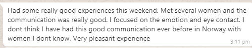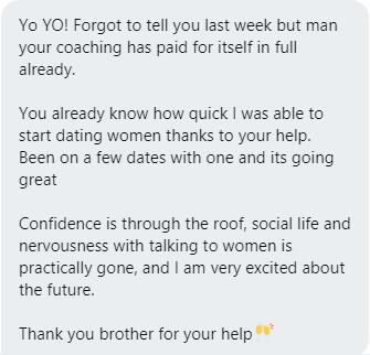 And whilst my coaching is not cheap – that’s because it’s effective. How often do you see dating coaches provide testimonials like mine?