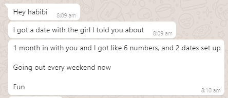 Before working with me Dan Koe was getting 0 dates. After only 4 weeks working together he had the skills to get numerous dates with high quality women. Oh, and he ended up in a relationship too.