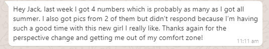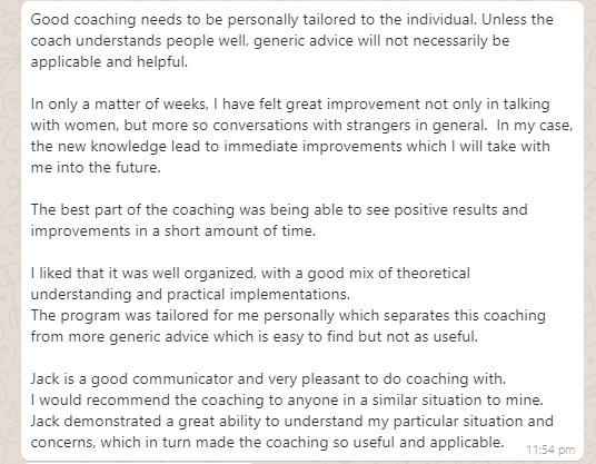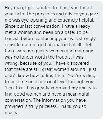 And whilst my coaching is not cheap – that’s because it’s effective. How often do you see dating coaches provide testimonials like mine?