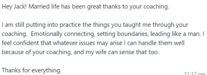 60 days working with me took ‘James’ from serious insecurities, to a relationship and “talking about [having a] family” with a modest woman.A year later? He's now married with a kid on the way...